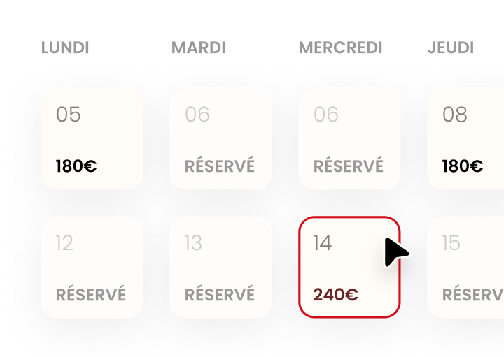 Ajustement des prix selon l’offre et la demande pour maximiser la rentabilité, avec une gestion fine du calendrier.